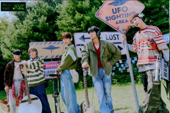 成员们的标志性乐器被特别设计成类似天线的造型,宛如UFO探测器般独特,吸引了视线。ONEWE将专辑贯穿主题“奔向星辰的旅程”完整融入概念照中,进一步提升了人们对《MAZE : AD ASTRA》的期待。