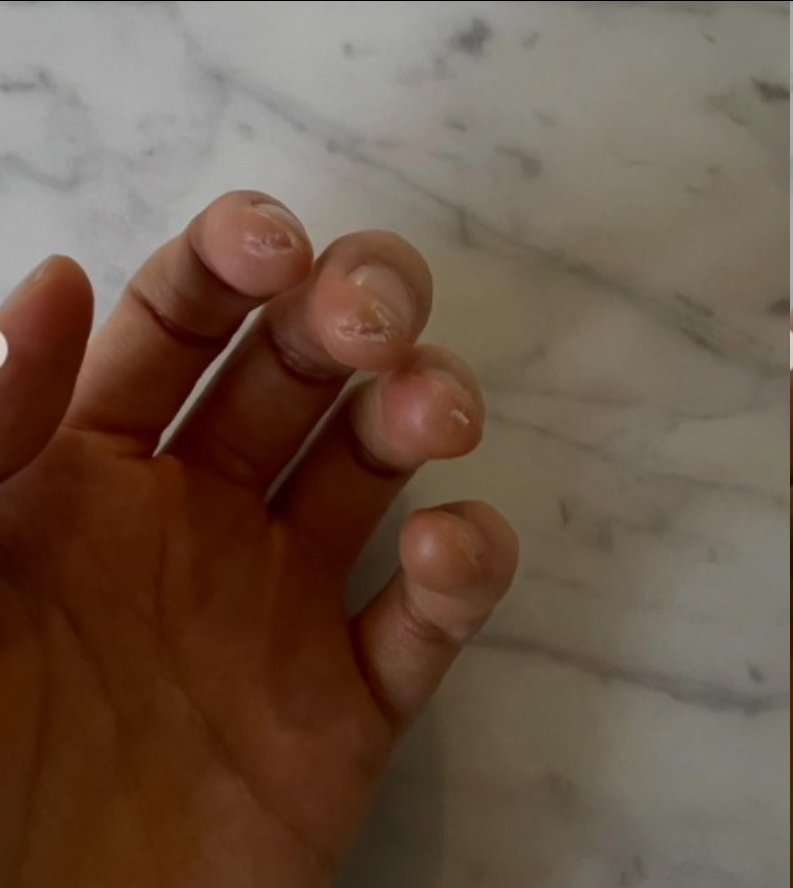 照片中,徐贤身着粉色礼服登上舞台,全神贯注地演奏。其中一张照片特写了她磨破皮的手指,见证了她为了这场演出全身心投入练习的汗水与努力。